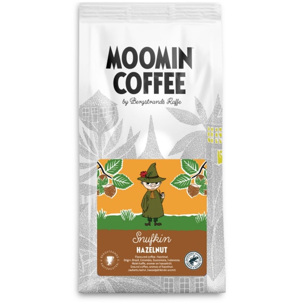Nuuskamuikkunen on vapaa sielu, joka arvostaa elämän yksinkertaisia ja aitoja asioita: kalastamista, musiikkia ja yksin vaeltamista yön hämärässä. Hänen huuliharpustaan ja huilustaan kumpuavat sävelmät lumoavat kaikki Muumilaakson asukkaat pienimmistä metsän mönkijöistä itse Muumiperheeseen. Juuri metsän rauhasta ja Nuuskamuikkusen rakastamasta luonnosta olemme ammentaneet inspiraation tähän uutuusmakuun – hasselpähkinään! Tämän Moomin Coffee -erikoiskahvin salaisuus piilee harvinaisissa pärläpavuissa, jotka ovat kypsyneet hitaasti Etelä-Brasilian Mogianan kukkuloiden syleilyssä. Pärläpapu on luonnon harvinainen lahja: kirsikka, jonka sisällä kasvaa vain yksi pyöreä papu tavallisen kahden sijaan. Tämä tiivistää aromit poikkeuksellisen pehmeäksi ja täyteläiseksi makuelämykseksi, jota Brasilian, Kolumbian, Indonesian ja Perun parhaat pavut täydentävät.